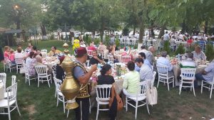 Sarayiçi Ağaköşkü Restora’nda gerçekleştirilen iftar yemeğinde davetlilerin ağzı Osmanlı geleneği şerbet ve hardaliyeyle tatlandırılırken, ailelerle birlikte geniş bir katılım sağlandı. Gece Selimiye eski müezzini Ersoy’un iftar duasının ardından sona erdi.